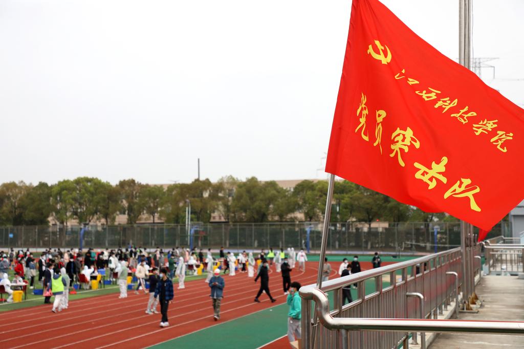 根据疫情防控工作需要,学校各级党委和各基层党支部筑牢“红色堡垒”,组建共产党员突击队,把疫情防控作为检验党史学习教育的生动实践,让一面面鲜红的党旗高高飘扬在核酸检测一线。据了解,学校是昌东镇唯一一所在当晚12点之前完成核酸检测任务的高校,近三万人控制在三小时之内完成。为更加高效推进第二轮全员核酸检测,学校结合第一轮核酸检测实际情况,认真把控每个环节,提前调配人员物资,细化责任分工,不断提高核酸检测效率。