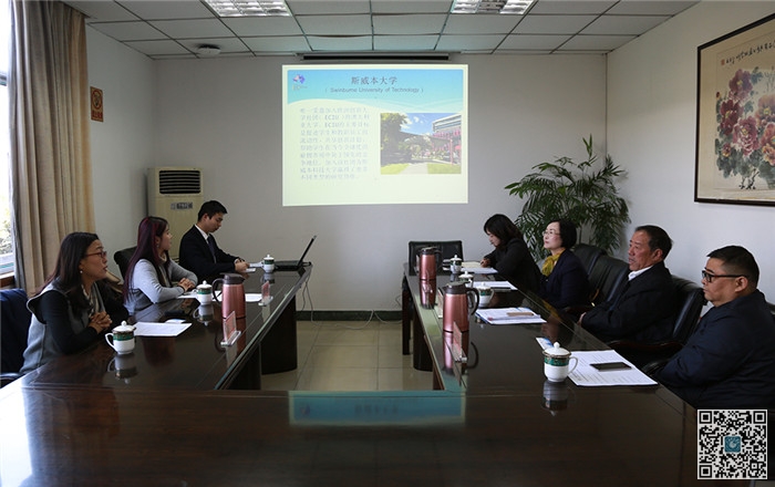 陈珏讲解了澳大利亚斯威本科技大学暑期夏令营项目的具体情况,以及项目特色。宾主分别介绍了两校的发展历史,探讨了两校未来发展与战略合作,包括暑期夏令营、开展学术交流、推进人才培养等方向的相关合作可能性。
