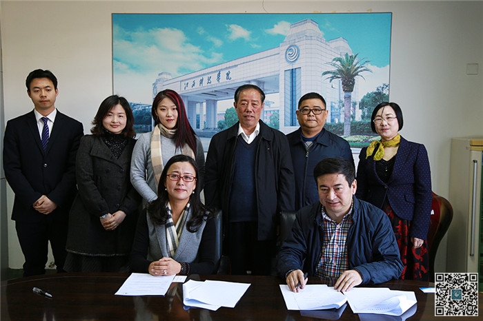 于果与陈珏在双方人员见证下签署了合作协议,并向来宾赠送了礼物。宾主合影留念。学工处杨海涛处长、外语外贸学院(国际教育学院)胥懋云院长、副院长黄卫军参会。