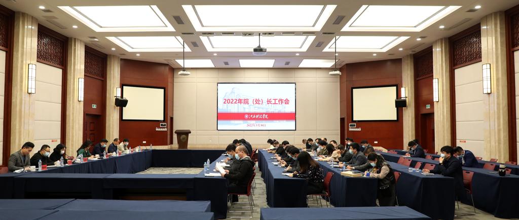 江科网讯(记者 何强江)3月30日上午,张海涛校长在行政南一楼第一会议室主持召开2022年院(处)长工作会。副校长陈石俊、林素君、闵桂林、马勇、李玮、周冰冰出席会议。