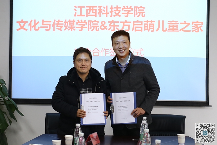 1月4日下午,文化与传媒学院与东方启萌儿童之家举行校企合作签约仪式。胡剑锋副校长、东方启萌教育管理有限公司董事长燕政旭、副董事长高登攀出席。参加仪式的还有公司各分园园长与助理,我校教务处长马红坤、文传学院院长齐新林。