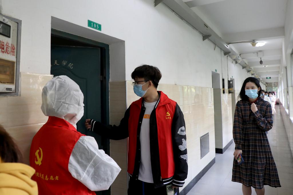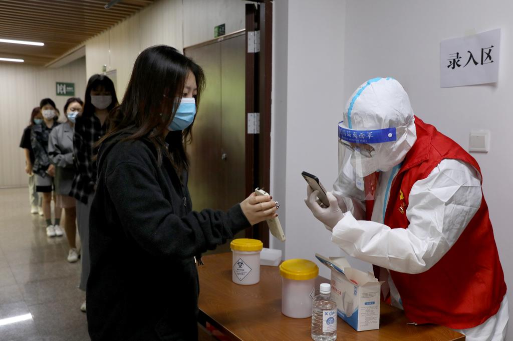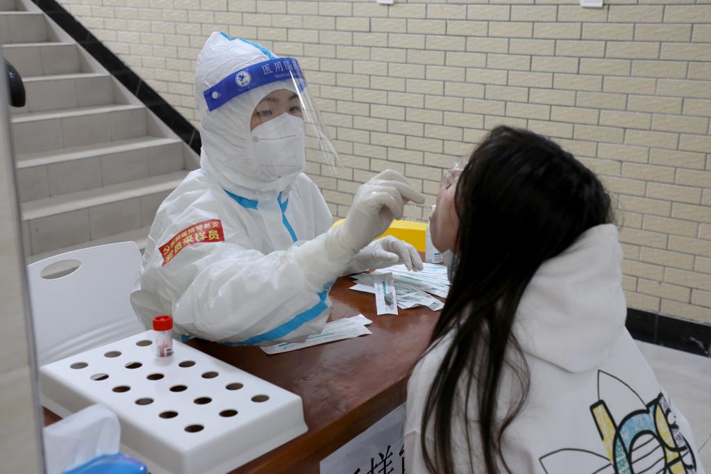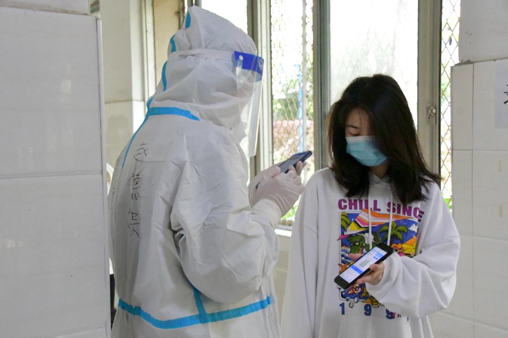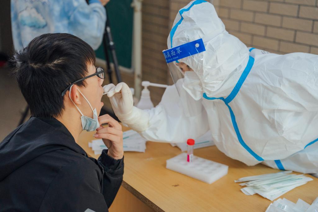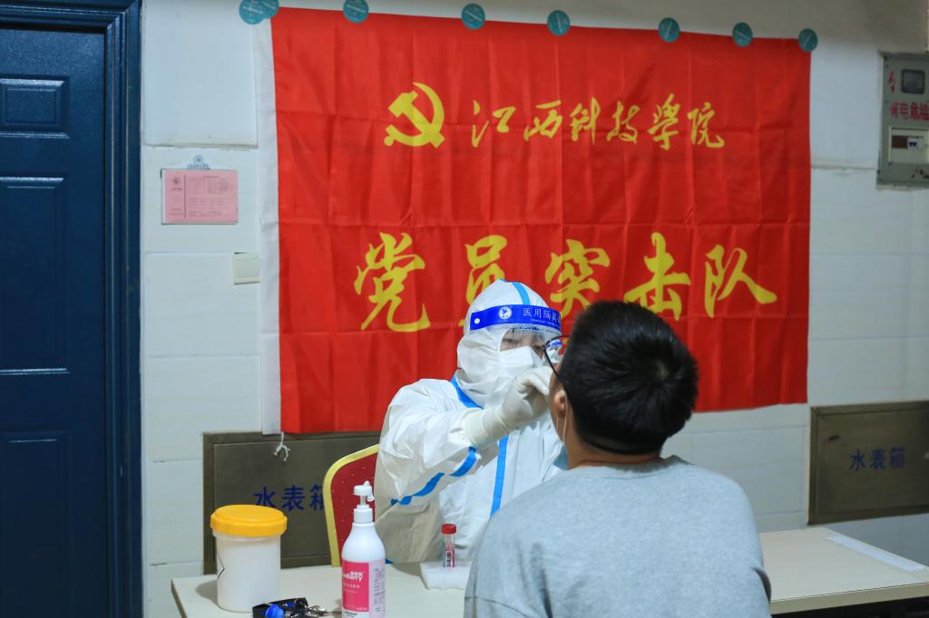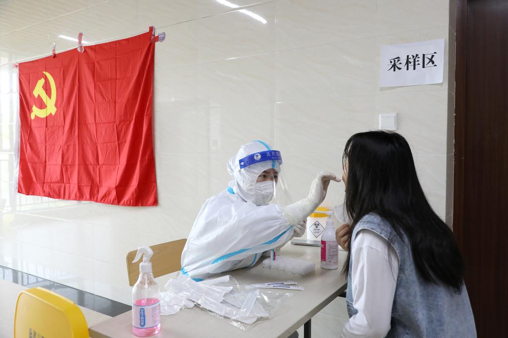 时间紧,任务重,两批医护人员和志愿者分别于6点半和8点半迅速集结完毕,并准时开展核酸检测工作。此次核酸检测依旧安排在各学生宿舍楼栋内进行,采取“双侧楼梯、单向循环”的方式保证秩序,将严格防控与暖心服务相结合。校(党)办、学工处(部)、总务处、医务所、人事处等部门协同合作,制定详细的检测安排表,提前布置检测场地,保障防疫物资供应和医务人员及志愿者的餐饮等。各学院党委书记带领辅导员组织协调现场工作,确保采样顺利高效进行。党员突击队、青年突击队坚守核酸检测工作一线,及时处理突发情况,切实提高核酸采样的速度和效率。师生自觉佩戴口罩,在志愿者的引导下有序排队、测温、登记信息,依次进行口腔咽拭子标本采样,并在采样结束后迅速离开采样现场。