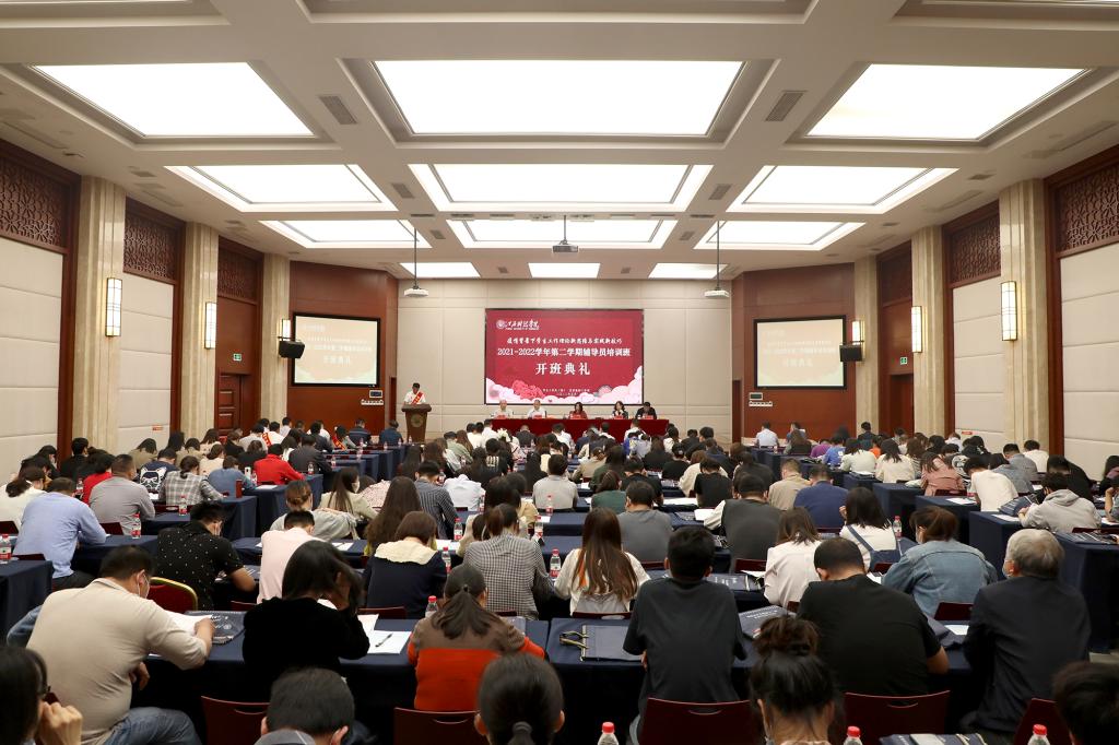 张海涛校长作动员讲话。她指出,辅导员是最能代表学校形象,最能代表学校实力,也是最能反映老师素质的一个群体。因此,学校不断加强辅导员队伍建设,不断对辅导员工作提出要求。她表示,和学生接触最多的是辅导员,一个辅导员要得到学生爱戴、受到学生喜欢、能让学生崇拜,就要在师德师风、日常言行、能力素质等各个层面要求自己。她强调,要成为一名好的、合格的辅导员,首先要做学生思想的引领人。培养德智体美劳全面发展的社会主义建设者和接班人是高校的职责,我们要培养这样的人,首先要成为这样的人。我们要引领学生的思想,就必须要有高于和优于学生的思想境界和道德修养。其次要做学生知识的传授人。我们不仅是思想引领,还要引路。自己要有务实的知识储备,结合自己的专业能力和经历经验,给学生传道授业解惑,在学生的人生规划上指点迷津,让学生少走弯路。最后要做学生生活的知心人。辅导员在面对众多年轻学生群体的时候,要第一时间知道学生的情况,了解学生的想法,能够想到办法释放学生的情绪,找到途径解决学生的问题。她进一步强调,辅导员作为“引领人”“传授人”“知心人”,一是思想要正。正人先正己,辅导员在学习、生活中各方面的思想都要有全盘的认识和把握,行为都要规范合理。二是素质要高。教师在社会上被广泛认知为高素质人群,辅导员作为高校教师队伍中的一股力量,要进一步提升自己的业务素质和文化素质,做到为人师表。三是能力要强。能力强表现在做事有方法,而方法来自于不断的学习,所以辅导员要有能力恐慌,树立终生学习理念,积极提高本领。