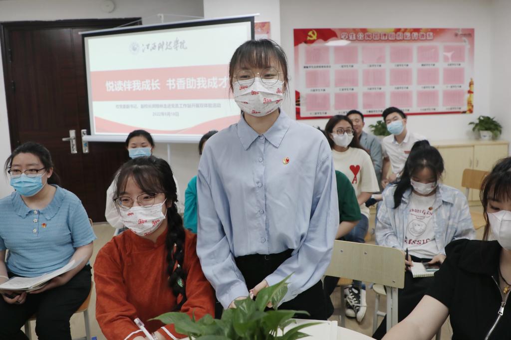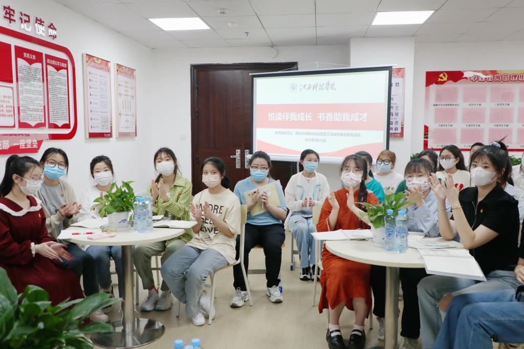 在32栋学生公寓党员工作站,闵桂林副校长与来自教育学院、财经学院、艺术设计学院、文化与传媒学院、管理学院的学生开展“悦读伴我成长 书香助我成才”主题座谈会。座谈会上,同学们分享了近期读书心得,并积极踊跃发问,向闵桂林副校长请教学习生活中的困惑。“闵校长,您觉得作为新时代青年,我们应当如何去努力提高自我价值?”“闵校长,我参加了‘互联网+’比赛,请问怎么样在这类比赛中提升自己的创新和创业能力呢?”“闵校长,可以为我们推荐一些适合大学生阅读的书刊杂志吗?”