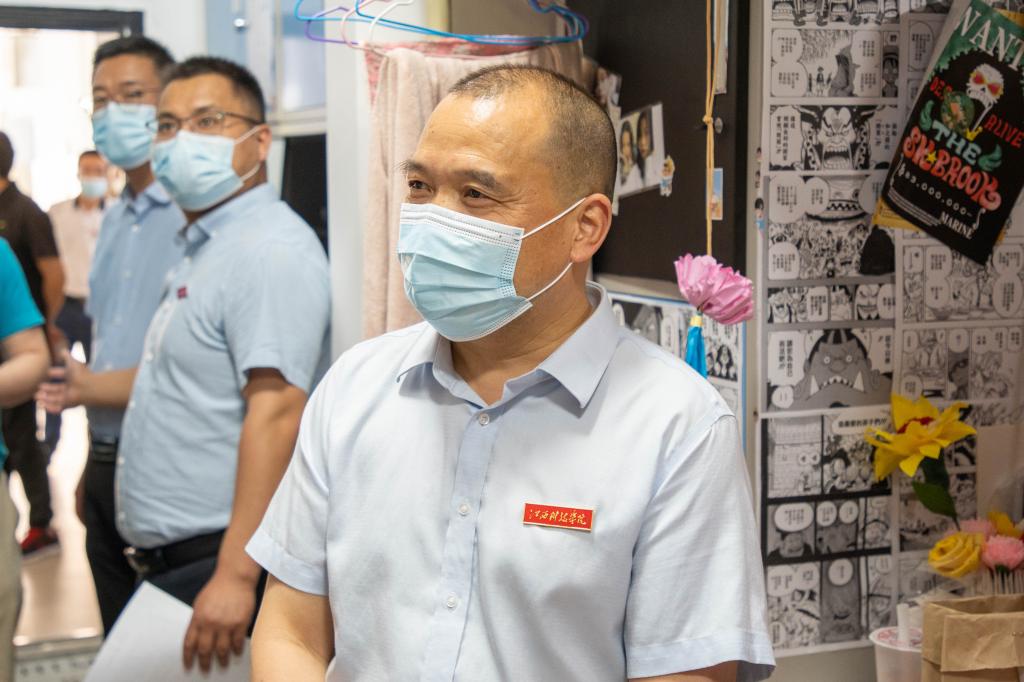 最后,闵桂林副校长来到学生宿舍进行走访。“对学校饭菜还满意吗?日常学习有没有受到影响?购物方不方便?”在学生宿舍,闵桂林副校长与学生亲切交流,了解学生疫情期间的心理、学习状态,并对同学们提出的问题进行一一解答。他叮嘱同学们要积极配合学校的疫情防控规定,适量运动,保持身心健康,劳逸结合,合理安排好疫情防控期间的学习生活。