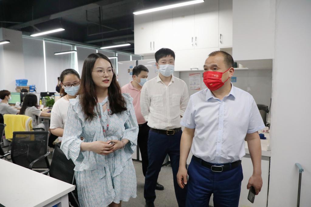 走访调研中,张海涛校长一行参观了南昌帕羽科技有限公司办公区、库存区、直播间等,与创始人万柳军进行交流,认真听取公司经营范围、人才需求、人才发展等基本情况。期间,张海涛校长看到我校2018届毕业生江锦辉在走出校门后已经成长为企业的重要力量,倍感欣慰。她表示,帕羽科技对学校人才培养质量的肯定与认可,进一步增强了我校更好地培养应用型人才的动力与信心。