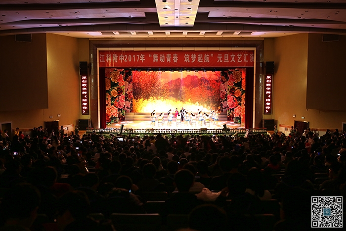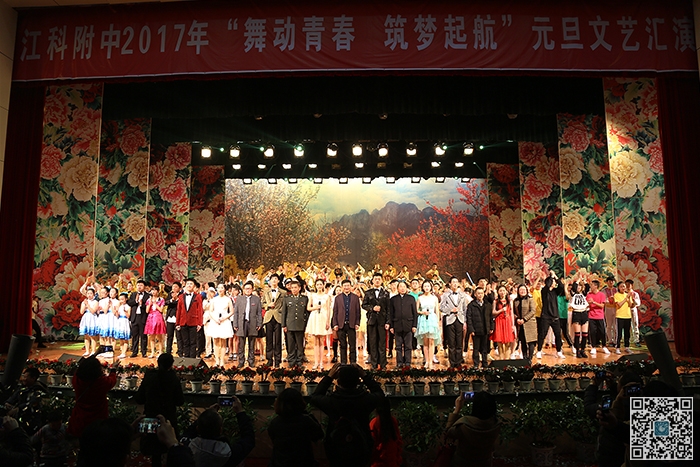 以“舞动青春,筑梦启航”为主题的2017江科附中元旦文艺汇演于12月30日下午在蓝海大剧场举行。江西省赣剧院、南昌大学人民武装学院、江西科技学院和江科附中的领导与附中、附小的学生和家长们一同观看了演出。