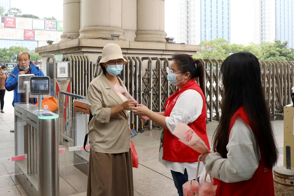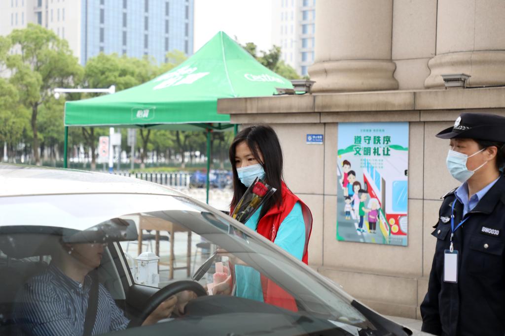 江科网讯(记者 何强江 陈佩璇 刘莹)“早上好,欢迎老师‘回家’!”“很惊喜,太有仪式感了!”5月23日,是我校全面恢复线下教学活动的第一天,早晨7点半开始,志愿者们在校门口、校园内为返校上班的教职工送上一支鲜花,迎接老师们的归来。