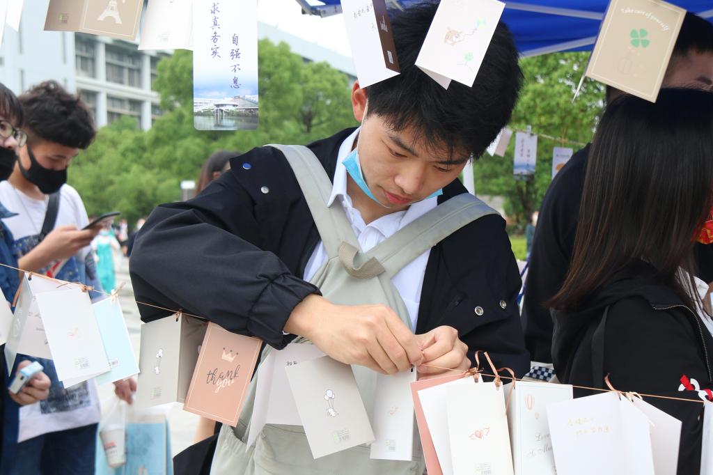 据了解,志愿者们还为同学们准备了“复课盲盒”,勉励大家勇于探索一切未知,亲手开启属于自己的“未来可期”。笔、书签、口罩、纸巾、糖、定制钥匙扣……打开盲盒,同学们直呼惊喜感满满。给老师倒一杯温开水、向老师行一次尊师礼、给老师书一封感谢信……各学院也以特别的方式欢迎老师们重返校园。