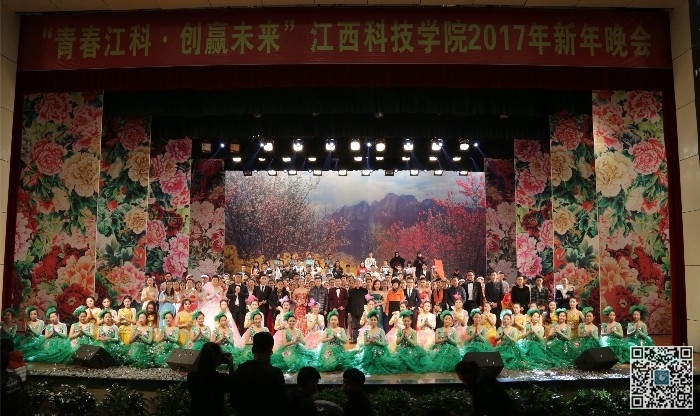 12月29日晚,“青春江科·创赢未来”江西科技学院2017年新年晚会在蓝海大剧场隆重举行。于果董事长、程样国书记、胡剑锋、林素君、黄辉玲、周万华、万哨凯副校长以及各机关处室代表,与1500余名师生欢聚一堂,一同观看了演出。