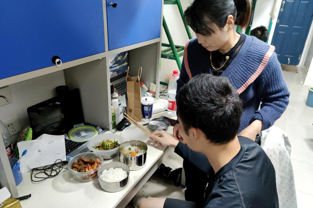 无独有偶,人工智能学院辅导员靳美珍趁4月30日周六时间得空,做了一顿丰盛的午餐给学生程昕鹏“接风洗尘”,祝贺他手术成功并康复出院。大骨汤、红烧鱼、油爆虾、辣椒炒肉、清炒油麦菜……一口口“家的味道”让程昕鹏在学校里也感觉到家的温暖。