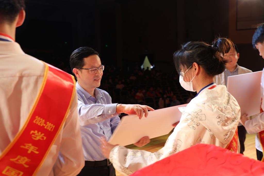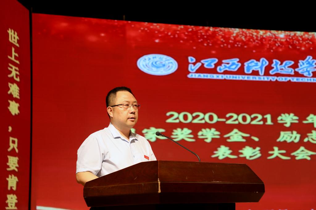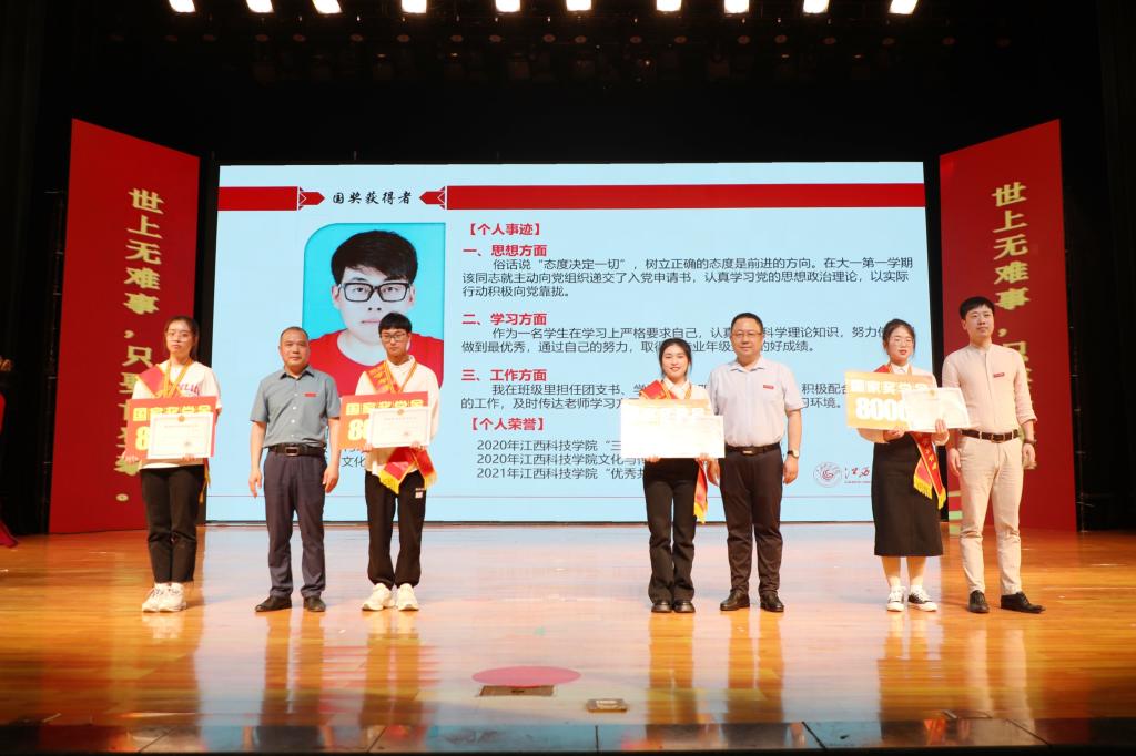 闵桂林副校长从基本情况、存在问题和优化改进等三个方面通报学校2021年学生资助工作。马勇副校长宣读《江西科技学院2020-2021学年国家奖学金表彰决定》和《江西科技学院2020-2021学年国家励志奖学金表彰决定》。与会嘉宾为获奖学生代表颁奖。