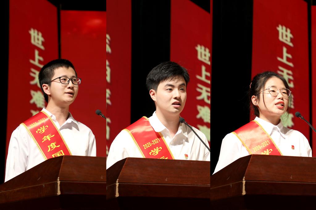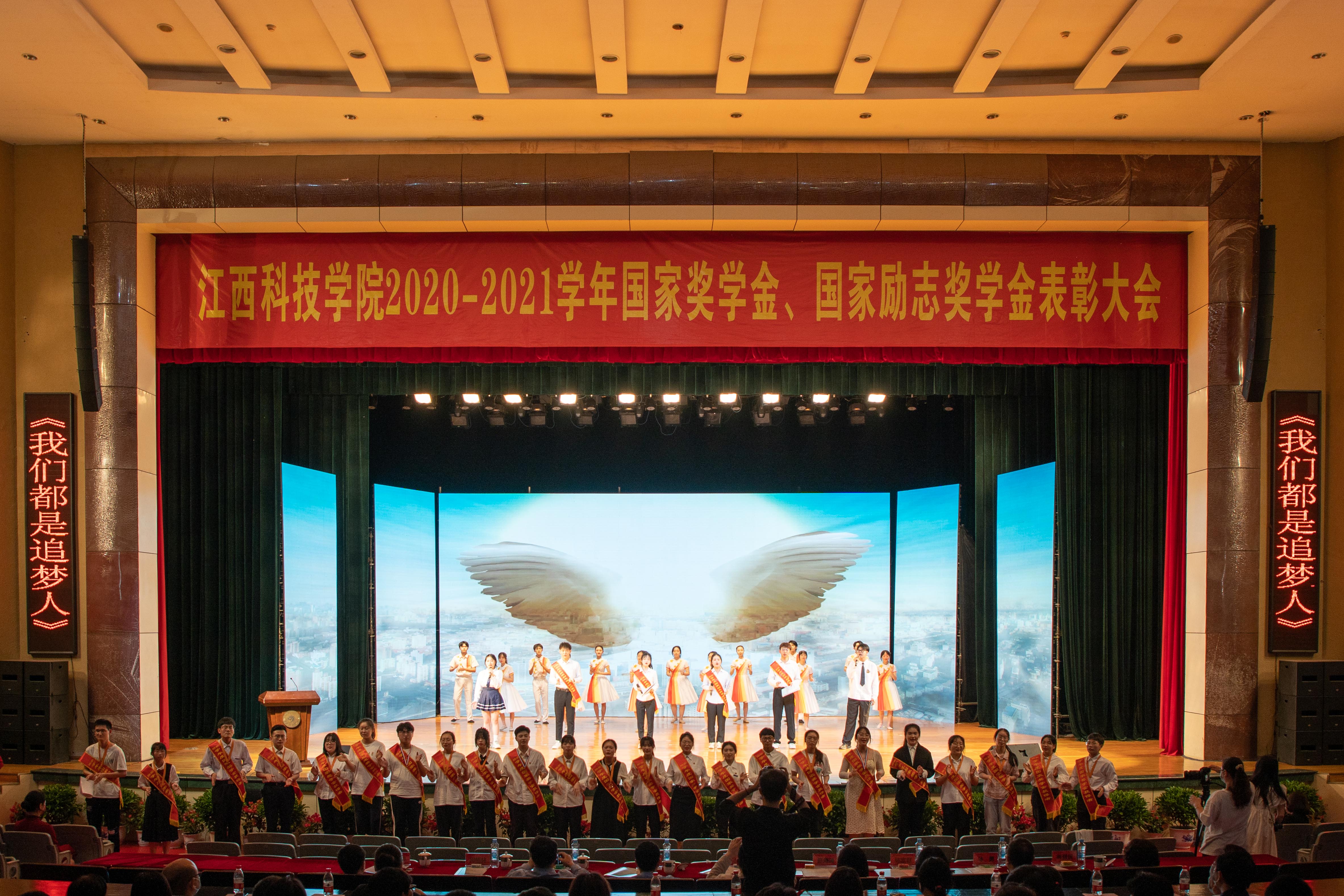 国家奖学金获得者代表桑柳剑、周玲艳、黄万明等三位同学结合自身经历,讲述各自在学习过程中的辛勤努力和在学生工作、社会公益、实习实践中的丰硕收获,充分展示出江科学子自强不息、开拓进取、蓬勃向上的精神面貌。国家励志奖学金获得者代表陈思源、胡婷婷、舒琪、赵景卓等四位同学朗诵《江科追梦人》。全体获奖学生合唱《我们都是追梦人》。