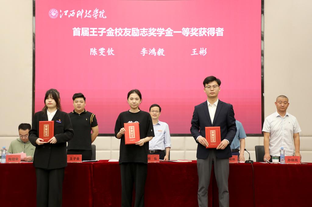 江科网讯(记者 何强江)5月26日上午,我校在行政南一楼第一会议室举行王子金校友创业基金启动仪式暨首届励志奖学金颁发仪式。校党委书记邓弘出席并宣布“创业基金启动”,校党委副书记、副校长闵桂林出席并宣读“励志奖学金”表彰决定。出席仪式的还有2020届校友、远尚实业集团董事长王子金,赣州校友会秘书长孙晓亮,远尚实业集团总经理陶冠荣、副总经理郑飞云。