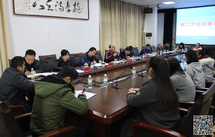 12月28日是我校第二个“校长接待日”。接待会于当天下午在行政楼北一楼会议室举行,二十三位学生代表出席。接待学生代表的校领导有王海校长和黄辉玲、周万华、万哨凯、张海涛副校长。校(党)办、总务处、教务处、学工处、校团委、保卫处等部门的负责人和校学生会主席、各学院党总支书记参加了接待。接待会由校团委负责人于海明主持。