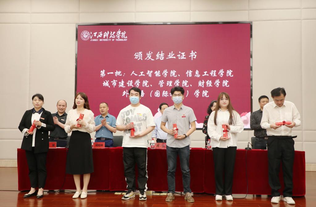 江科网讯(记者 刘莹)5月26日下午,我校2021-2022学年第二学期辅导员培训班结业典礼在行政南一楼第一会议室举行。校党委书记邓弘,副校长林素君、闵桂林出席。学工处(部)、人事处(党委教师工作部)负责人,各学院学工副院长,全体参训辅导员参加结业典礼。