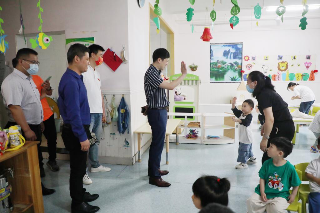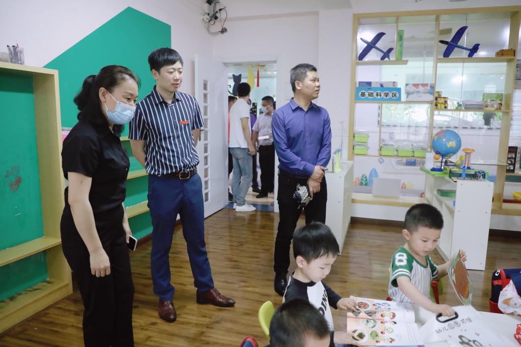 香榭丽幼儿园程园长、智慧树幼儿园潘园长热情接待了李玮副校长一行,并带领李玮副校长参观了园内班级、图书角、活动室、户外设施、厨房等,详细介绍了幼儿园办园规模、课程设置、师资力量、文化建设等情况。