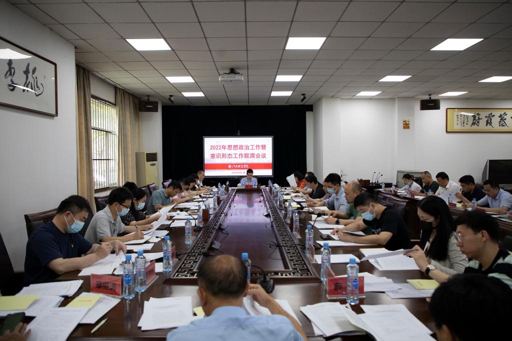 会议围绕学校2022年思想政治工作重点任务、2020年思政工作质量测评反馈问题整改工作、2021年意识形态考核反馈问题整改工作、教职工政治理论学习、教职工师德师风建设、在校外教及留学生宗教活动管控工作等内容进行了研究部署。各单位就相关工作进行了交流讨论。