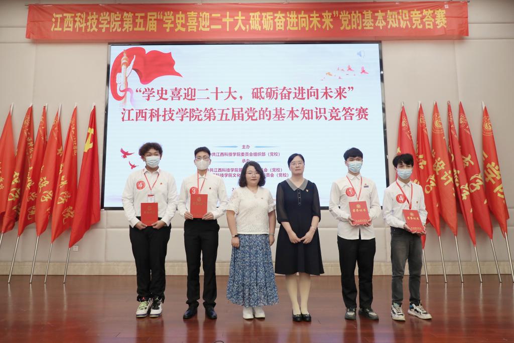 本届竞赛决赛试题有单选题、多选题、辨析题三种形式,内容涵盖党史、习近平新时代中国特色社会主义思想、党的十九大及十九届历次全会精神和学习强国平台知识等。比赛中,选手们胸有成竹、从容应对,充分展示扎实的党的知识功底和良好的精神风貌。经过角逐,城市建设学院代表队荣获一等奖,医学院代表队荣获二等奖,人工智能学院、艺术设计学院代表队荣获三等奖。同时,城市建设学院卢艳妮、医学院孙广瑞、人工智能学院张旭云、艺术设计学院洪长华等四位教师荣获优秀指导老师;人工智能学院邓海鹏、江鸿,艺术设计学院倪润鑫、城市建设学院陈宗平等四位学生荣获优秀选手。
