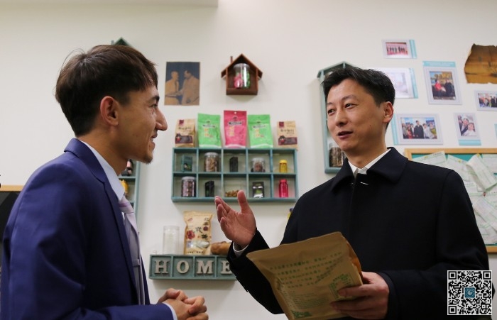 在红绿蓝众创空间,马健一行观看了我校大学生创新创业成果展,调研了大学生创新创业工作情况,并与创业团队代表进行了交流。马健对我校浓厚的创新创业氛围、丰硕的创新创业成果、完善的创新创业体系给予了高度评价。他还与创业学子米拉迪力亲切交流,了解团队的创业情况,并对其创业项目“骆驼教授”予以肯定,勉励他们继续强化“互联网+”思维,提升项目品牌服务和人文创意。