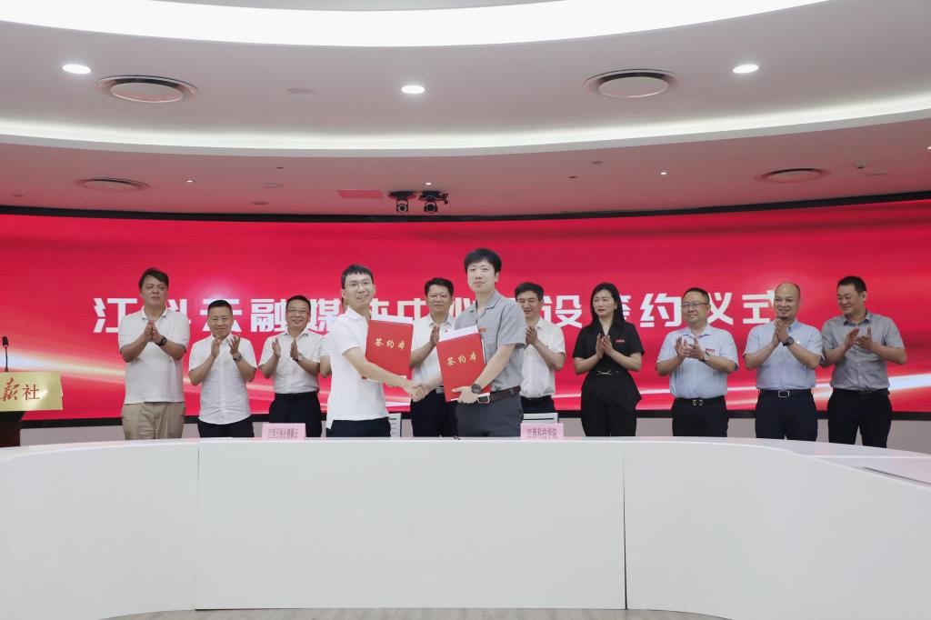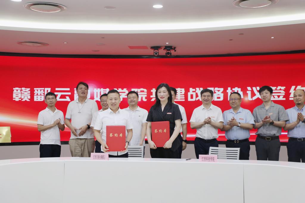 此次与江西日报社的战略合作,是我校在“融媒+教育”上的一次创新与突破。未来,学校将与江西日报社携手共建“融媒体+教务+电商生活+实训基地”等功能于一体的示范性人才培养实体——“赣鄱云”校园融媒体中心;构建一套“融媒体项目化”的课程体系与人才培养机制;加大双方师资人才交流力度,打造一支“双师双能型”师资队伍;建立校媒“融媒体+教务+电商+生活服务”实训基地,孵化一批应用型传媒技术人才;开发一套“江科云·融媒体智慧平台”,形成内容+渠道+平台+运营+管理+教学服务的生态环境,帮助学生掌握专业实训技能,实现“校媒融合、产学共赢”的有益探索。