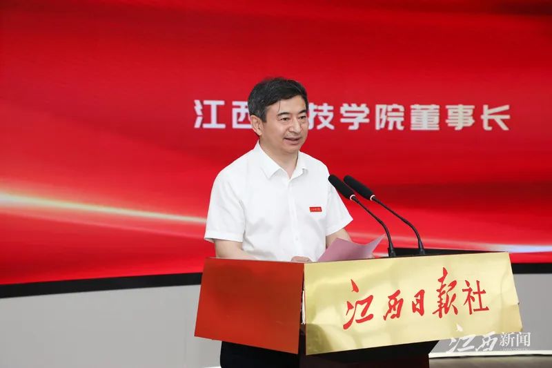 黄万林社长在致辞中表示,教育是最大的民生,事关千家万户,事关长远发展。近年来,江西日报社高度关注我省教育事业发展,不仅在舆论宣传上为教育强省建设鼓与呼,还在“融媒+教育”的实践上不断探索,助推我省教育行业媒体深度融合及数字产业发展。以“赣鄱云”融媒体智慧平台为纽带,与江西科技学院实现全面战略合作,开启共建江科云融媒体中心和“赣鄱云”融媒学院的序幕,是“融媒+教育”的全新实践,也是校媒强强联手推进媒体深度融合有益探索,对推进我省高校媒体深度融合有很强的示范作用。接下来,将进一步整合资源要素,把最先进的融合理念、最好的技术资源、最优的人才力量放到战略合作中去,携手江西科技学院全面开启教产学研合作新模式。