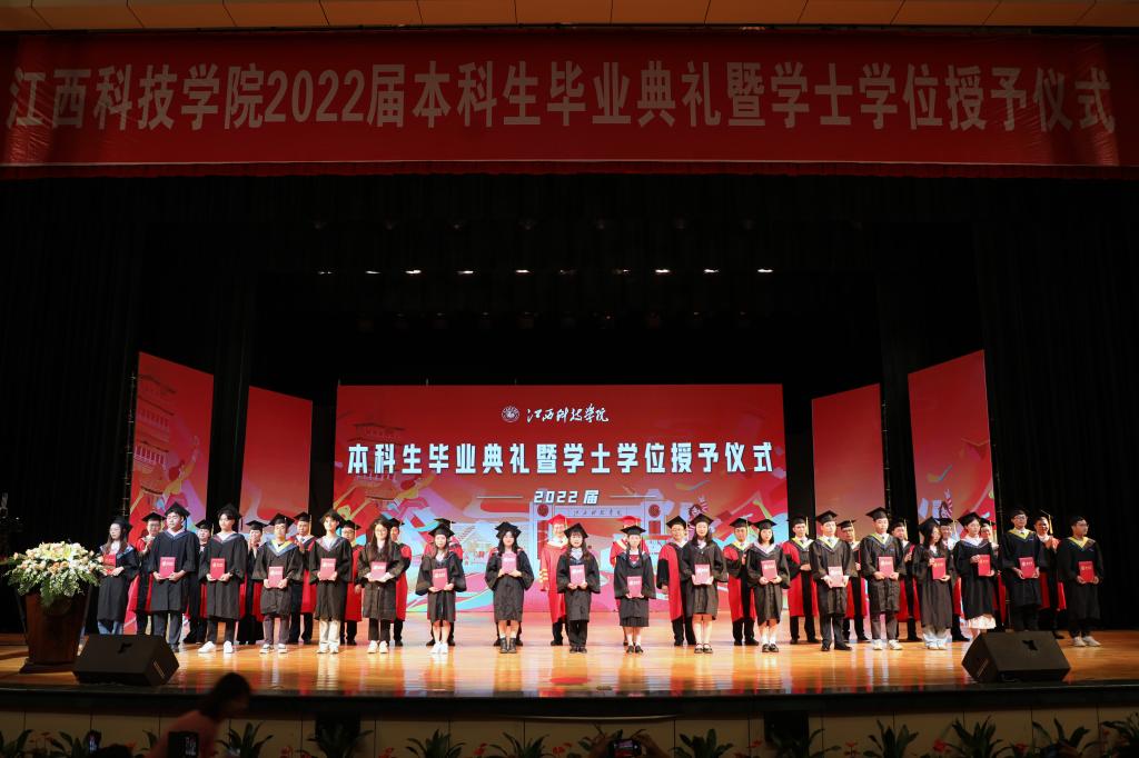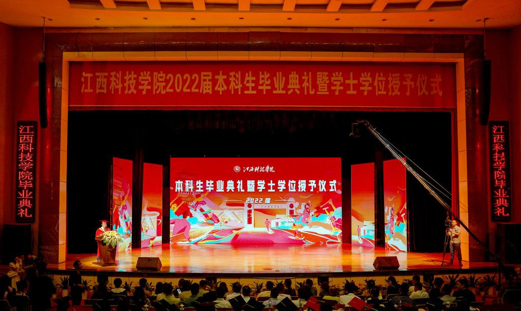 江科网讯(记者 何强江)骊歌灼芳华,青春赴山海。6月26日,江西科技学院2022届本科生毕业典礼暨学士学位授予仪式以“线上+线下”的方式在蓝海大剧场举行。毕业生身着学位服,怀着激动和喜悦的心情共赴这场盛典,在接受师长的诚挚祝福后开启逐梦未来的崭新征程。