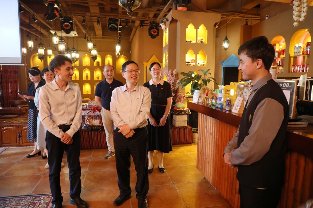 慰问中,邓弘书记转达于果董事长的问候,详细询问米拉迪力及创业团队的工作、生活情况,并送上慰问品,表达学校的祝福和关心。他表示,学校会始终关心、支持少数民族毕业生的生活和事业发展,切实帮助其解决工作和生活中的困难,学校永远是江科学子的坚强后盾。同时,对他们在今年南昌发生疫情后,主动作为党员志愿者,为一线抗疫人员免费提供餐饮,为社会做贡献的行为表示高度肯定和赞扬。并希望少数民族毕业生继续努力发挥好自身优势,努力工作,把“五个认同”“三个离不开”的民族团结理念融入到工作和生活中,充分发挥示范和带动作用,成为创新创业和加强民族团结的优秀代表,为学校的建设和发展贡献力量。