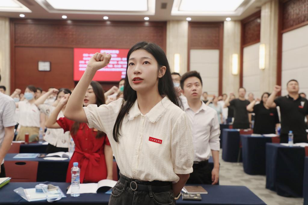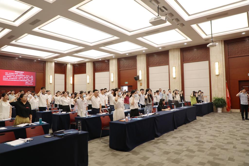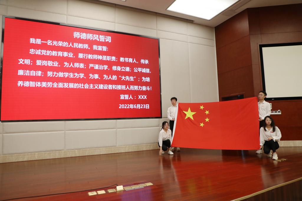 开班仪式上,全体学员举起右拳,面对国旗庄严宣誓。杜一帆、王婷作为参训教师代表发言,他们表示将忠诚党的教育事业,立德树人,涵养自身,在工作中严格要求自己,以满腔热忱投入到工作中去,真诚地为每一个学生的成长和发展服务,在这个神圣的岗位上实现人生价值。