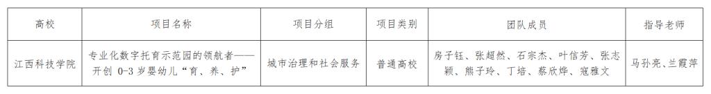 经资格审查和竞赛评审委员会的前期初审、复评以及决赛终审答辩,我校报送的《专业化数字托育示范园的领航者——开创0—3岁婴幼儿“育、养、护”新模式》项目最终入围国赛。根据上级有关工作要求,现特此公示,公示时间为6月30日-7月3日,如有异议请与双创办联系。