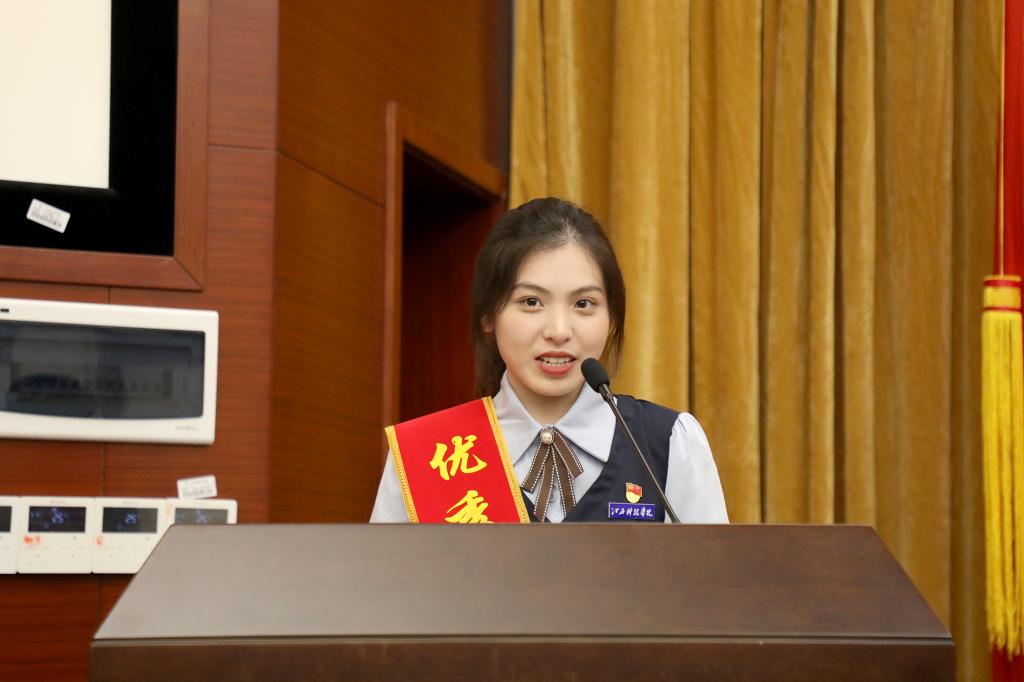 一张张自信的笑脸,一个个闪亮的名字,优秀先进代表们成为当天现场的焦点。纪委书记、组织部部长夏拥华宣读《中共江西科技学院委员会<关于表彰2021-2022学年优秀共产党员、优秀党务工作者和先进基层党组织的决定>》后,受到表彰的代表们走上主席台,在欢快的音乐声中接过沉甸甸的荣誉。优秀共产党员教工代表、医务所所长庄义泉,优秀共产党员教工代表、江科附中教师罗燕红,优秀共产党员学生代表、教育学院学生黄雅婷,优秀党务工作者代表、信息工程学院党委书记林赛华,先进基层党组织代表、协同创新中心教师张乐芳先后作交流发言。