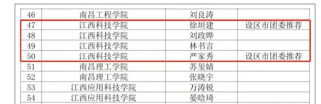 据悉,寻访“中国大学生自强之星”活动由团中央和全国学联主办,每年举办一次。通过评选,希望广大团员青年以大学生自强之星为榜样,把爱国主义作为始终高扬的光辉旗帜,把勤奋学习作为人生进步的重要阶梯,把深入实践作为成长成才的必由之路,把奉献社会作为不懈追求的优良品德,努力成长为中国特色社会主义的合格建设者和可靠接班人。活动自开展以来,受到广大高校师生的密切关注,推报活动经学生申报、校级团委审评推荐、省级资格审查和省级评委会专家审评和公示,最终产生“江西省大学生自强之星”人选210名,“中国大学生自强之星”奖学金推报人选58名(其中“中国大学生自强之星标兵”奖学金推报人选1名)。
