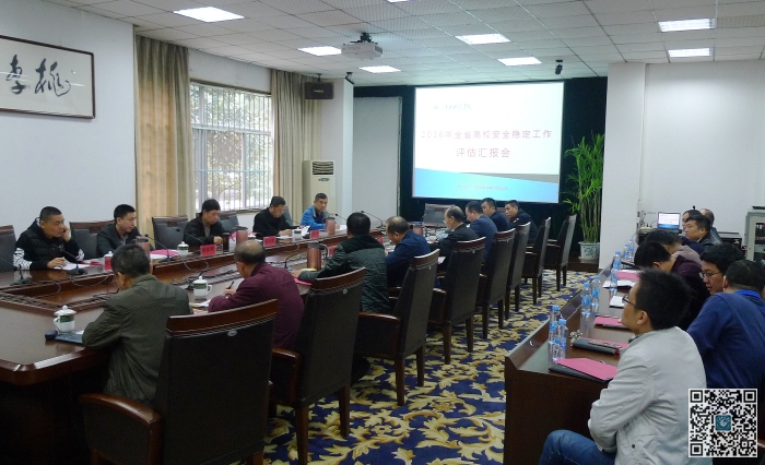 会上,吴本荣组长说明了评估的内容和程序。程样国代表校董事会、校党委和行政对考评组来校指导工作表示欢迎和感谢。他介绍说,我校高度重视安全稳定工作,有健全的工作机制和严密周全的举措,从而确保了学校的安全稳定。王海简要介绍了我校自去年底以来在安全稳定方面所做的几项重点工作。他表示,我校把安全稳定工作纳入综合改革的重要内容,将进一步优化工作机制。周万华全面系统地汇报了我校本年度安全稳定工作。他说,本年度我校加强了组织领导,平安建设得到提升;加强了安全管理,各类案件得到控制;加强了防护设施,重大隐患得到消除;加强了队伍建设,群防群治得到发挥。他表示,面对依然严峻的安全稳定工作形势,我们将把安全防范工作进一步做实、作牢、做好。