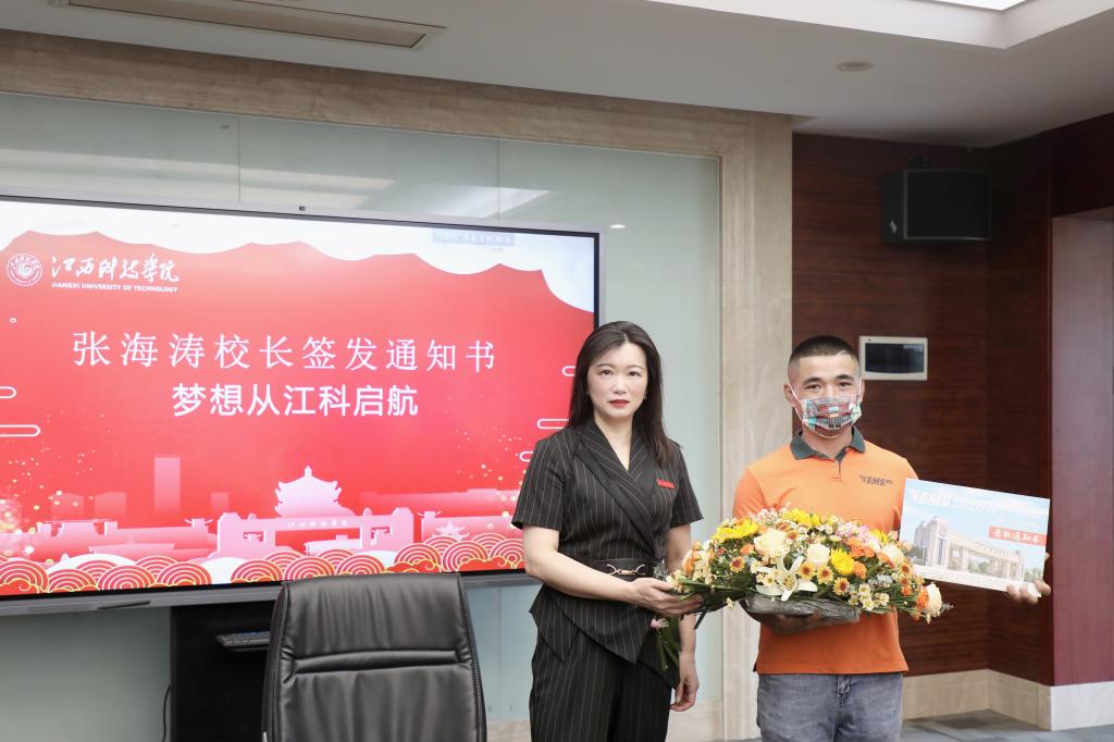 在首发录取通知书仪式上,张海涛校长从数千封通知书中抽取了浙江考生刘文翔、南京考生陈露、北京考生何紫桐、福建考生赖洋惠、天津考生满恒源、江西考生范舸瑶、浙江考生陈璐等7名幸运同学,亲手为他们的录取通知书签发校长章并封印交至邮政工作人员手中。她表示,随着首批录取通知书的发出,2022级新生将与江西科技学院在这个最美盛夏相遇。对于新生和家长们的期待,学校已经做好充分的准备,各学院、各部门也将进一步把工作细节做到位,优化提升服务质量。她相信,来自五湖四海的充满青春活力的学子们在江科可以遇见更好的自己,也能为江科的未来增添浓墨重彩的一笔。