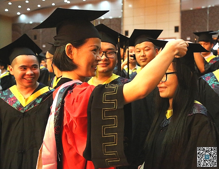 授学位后,一些学院还播放了精心制作的视频短片。短片生动地反映了应届本科毕业生们对老师、对母校深深的眷恋之情和积极勇敢走向未来的高昂精神风貌,让毕业生潸然泪下的同时又充满了奋斗的动力。
