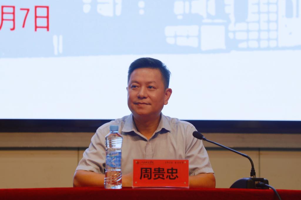 周贵忠主任向我校新入职教师表示热烈祝贺。他简要介绍了省高校师资培训中心基本情况,希望未来能与学校有更多合作,共同促进师资培训工作,为教师的职业发展贡献力量。他指出,当前世界正处于百年未有之大变局,广大教师要牢记习近平总书记嘱托,勇于面对各种机遇与挑战。一要着力构建新型的师生关系,在教育教学工作中转变思想,与学生平等相处,尊重学生人格,因材施教,激励学生自我完善。二要突破传统教育教学方法,运用好数字化教育教学技术,把信息化资源与课堂教学活动紧密结合起来,为教育教学注入新的活力。三要适应新形势下教师职责定位的变化,认清教师是学生学习过程中的管理者、推动者、引导者、建议者,在日常教育教学过程中要鼓励学生养成适合自身特点的学习习惯、研究习惯,帮助学生发挥创新思维,提升解决问题的能力。四要不断加强自身建设,提升课程思政建设的意识和能力,有效推动课程思政在实践中落地生根,落实立德树人根本任务,努力培养更多堪当民族复兴大任的时代新人。