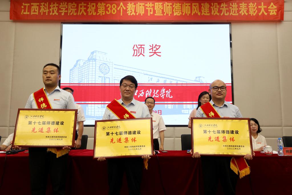 江科网讯(记者 何强江)迎接党的二十大,培根铸魂育新人。9月9日上午,我校在行政南一楼第一会议室召开庆祝第38个教师节暨师德师风建设先进表彰大会,对学校教学和学生管理一线涌现出来的先进集体和优秀个人进行表彰,唱响尊师重教主旋律,提升教师使命感、幸福感和荣誉感,奋力开创学校教育事业高质量发展新局面。