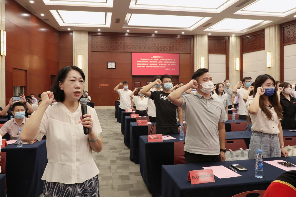 林素君副校长带领新入职教师代表面向国旗庄严宣誓。闵桂林副校长宣读《关于表彰学校第十七届师德建设先进集体及师德标兵、师德先进个人的决定》。校领导为受表彰的先进集体和个人颁奖。