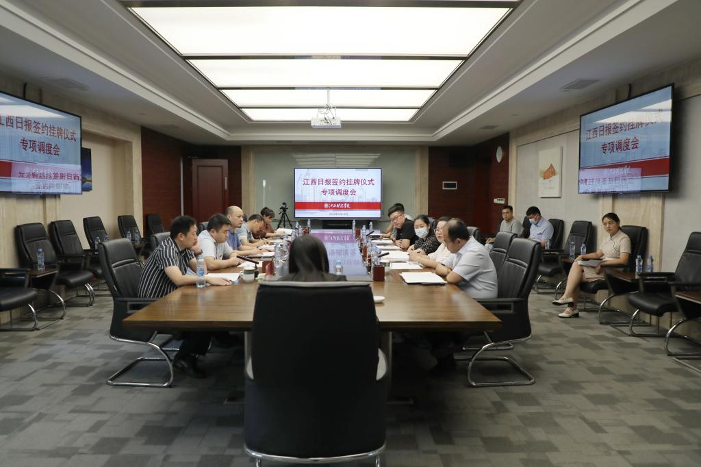 江科网讯(记者 刘莹)9月14日下午,我校在行政南一楼第三会议室召开江西日报社签约挂牌仪式专项调度会。校长张海涛,副校长李玮、陈辉出席会议。相关部门、单位负责人参会。