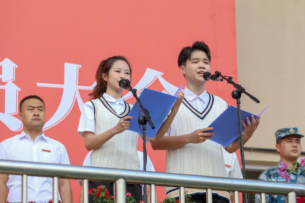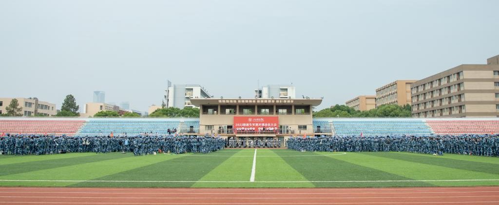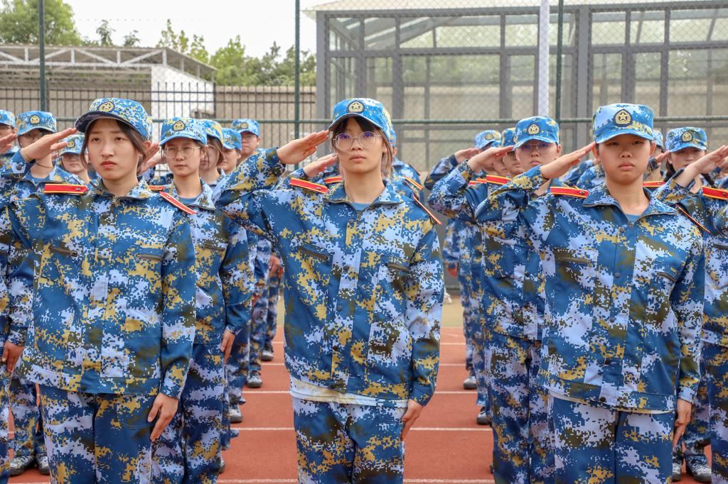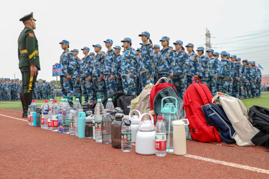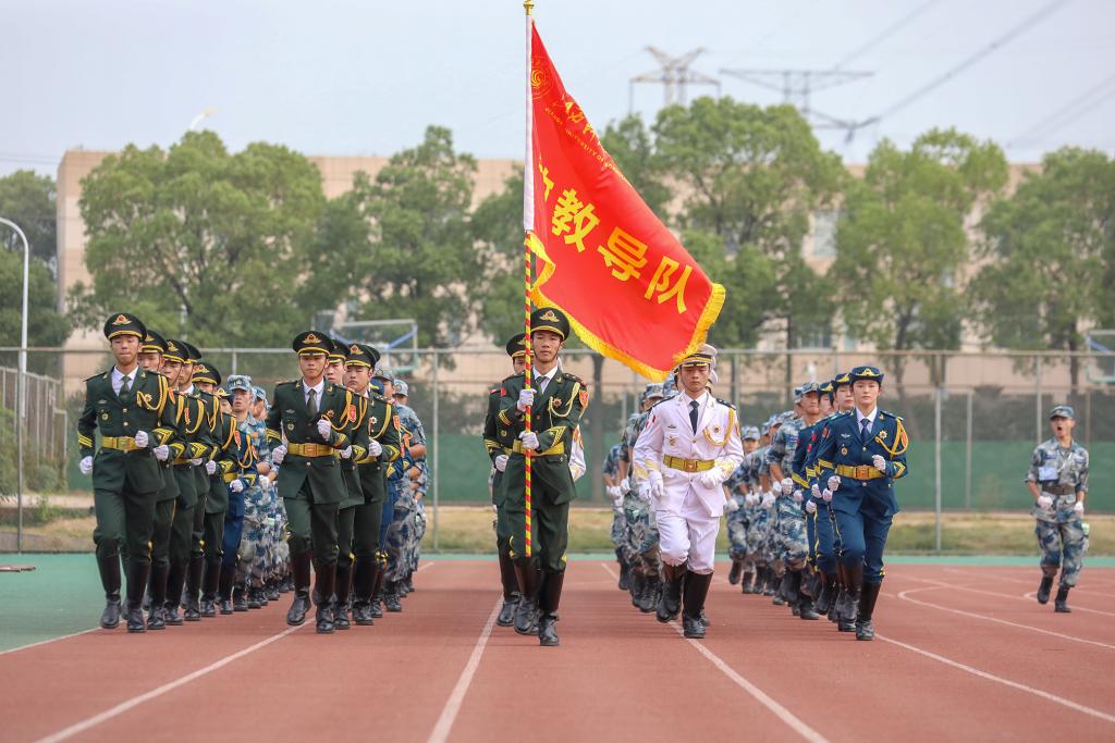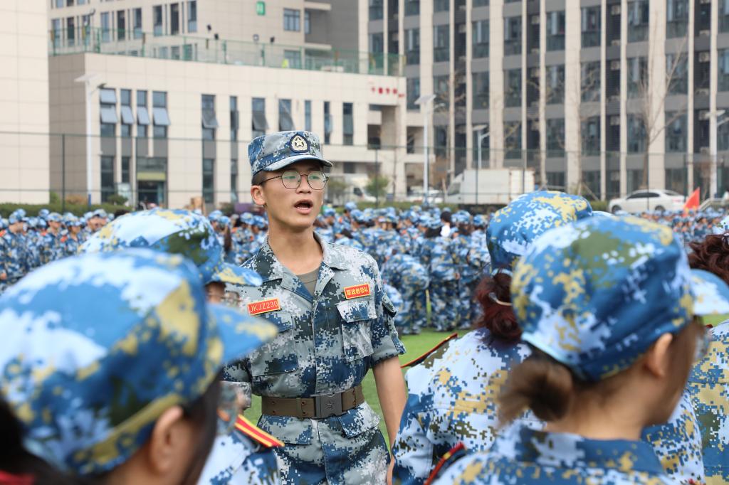 动员大会上,学长学姐代表向全体2022级本科新生致欢迎辞,全体军训教官进行带训宣誓并进行中队教官分配,现场师生齐唱校歌《同一片蓝天》。会后,为期两周的军训正式开始。(图 / 宣传部 学工处 见微知著大学生网络文化工作室)