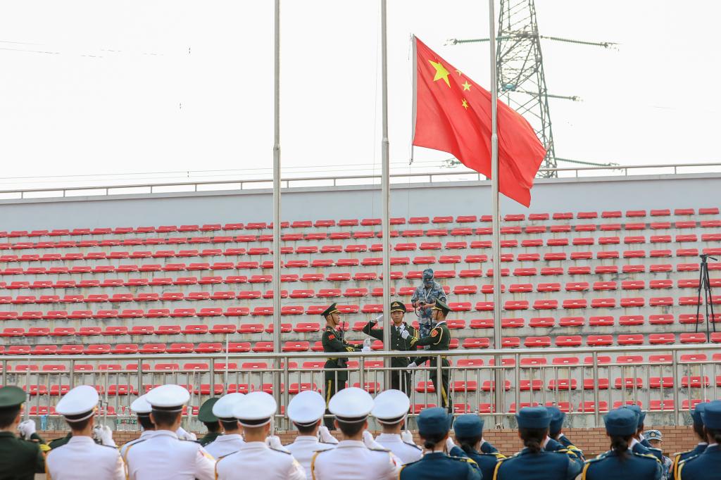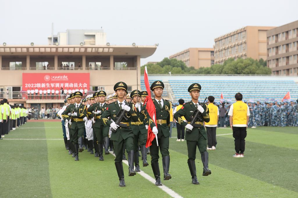 鲜艳的五星红旗冉冉升起,在雄壮的国歌声中,大会正式拉开帷幕。闵桂林副校长作动员讲话并下达开训命令。他指出,军训是全面贯彻党的教育方针,培养德智体美劳全面发展的社会主义建设者和接班人的重要举措,也是大学生加强国防教育、增强国防观念、强化爱国精神的必修课。他简要分析当前国内外局势,要求同学们增强忧患意识,以积极的态度投入到军训中去,努力提升自身维护国家安全与发展的能力与素质。对参训学生,他提出三点要求,一是勤参训、守规矩,做一个自我约束的人;二是练筋骨、强体魄,做一个意志坚强的人;三是明思想、提站位,做一个有觉悟的人。他希望施训教官、中队辅导员和后勤服务人员要做到严格训练,有人文关怀;要训练循序渐进、张弛有度、劳逸结合;要密切配合,全心全意为学生服务。最后,闵桂林副校长希望全体参训师生科学组训、文明施训、正规管训,确保2022级本科新生军训工作顺利进行。