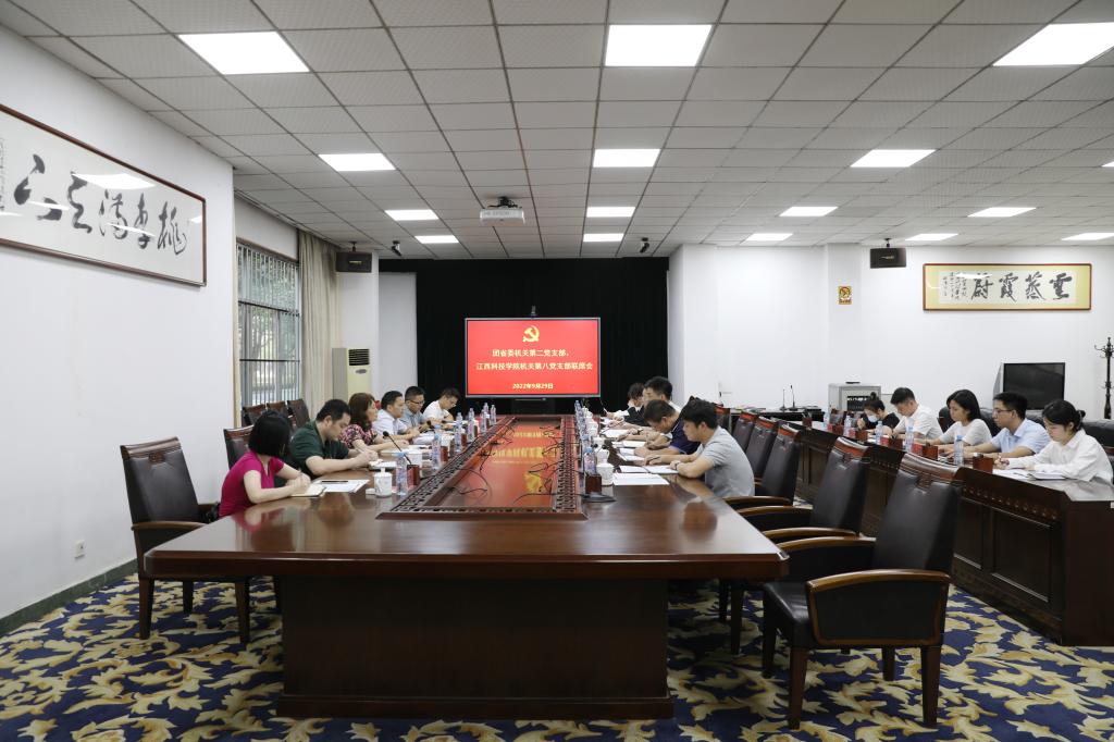 张雪黎一行先后参观了我校心理健康中心、求真音乐厅、32栋学生宿舍党员工作站、大学生思想政治教育基地、文化与传媒学院、校团委等,实地了解学校硬件建设、发展历程、办学成就等。参观结束后,双方在行政北一楼会议室举行团省委机关第二党支部与江西科技学院机关第八党支部联席会,重温习近平总书记在庆祝中国共产主义青年团成立100周年大会上的重要讲话精神,听取我校共青团工作汇报,重点了解基层团组织建设情况。团省委机关第二党支部全体党员,我校机关第八党支部全体党员、基层团干代表、团员青年代表参加会议。会议由李冻生主持。