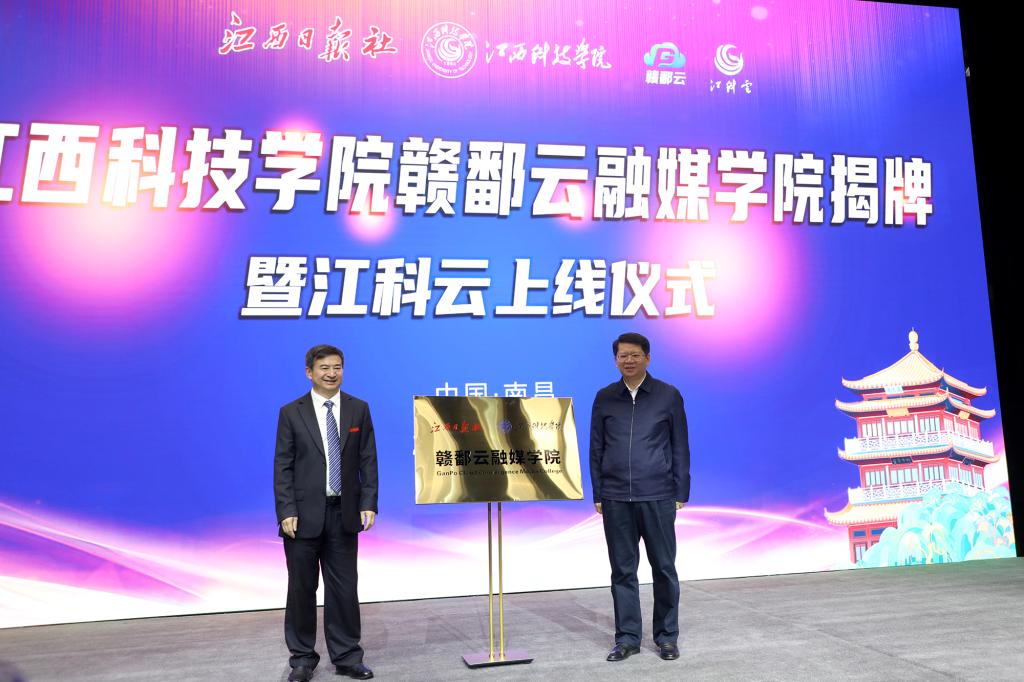 江科网讯(记者 何强江)共赢致和,行稳致远;同心同力,开创未来。经过数月的精心筹备,10月9日上午,江西科技学院“赣鄱云”融媒学院揭牌暨“江科云”上线仪式在文化与传媒学院映山红剧场举行,这标志着全省首个党媒与民办高校共建的产业学院正式落地。