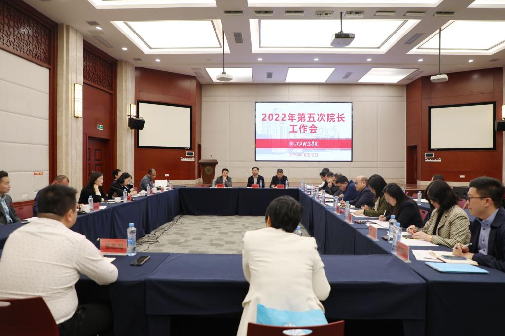 江科网讯(记者 刘莹)10月12日下午,校长张海涛在行政南一楼第一会议室主持召开2022年第五次院长工作会。副校长林素君、闵桂林、李玮、周冰冰、陈辉出席会议。各学院院长参会。