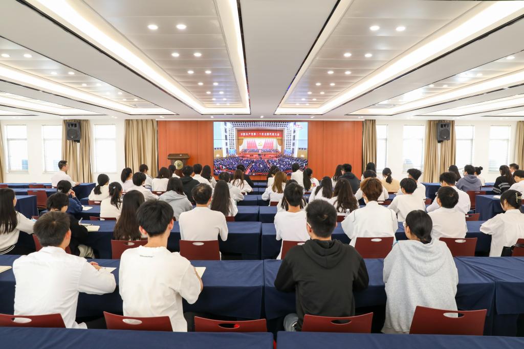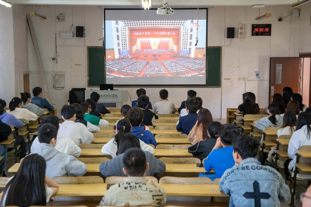 董事长于果、校党委书记邓弘、校长张海涛等在校校领导以及全校副处级以上干部在行政南一楼第一会议室收看党的二十大开幕会实况,学习党的二十大精神。校党委学生工作部和校团委组织学生骨干集中观看直播,全校各学院、各部门分别组织师生通过网络、电视、手机等途径密切关注会议。在收看直播现场,师生聚精会神听报告、全神贯注做笔记。开幕会后,师生畅谈对党的二十大报告的感想与体会,一致认为,党的二十大是在全党全国各族人民迈上全面建设社会主义现代化国家新征程、向第二个百年奋斗目标进军的关键时刻召开的一次十分重要的大会,关系到党和国家事业发展前景,关系到最广大人民的根本利益。习近平总书记的报告高屋建瓴、主题鲜明,求真务实、催人奋进。