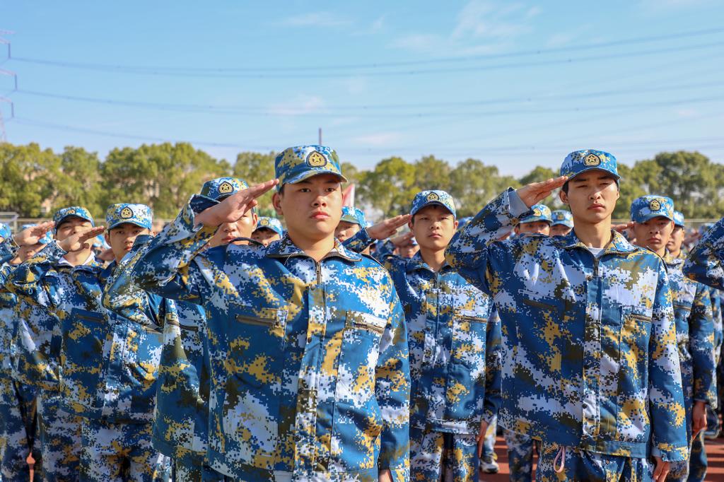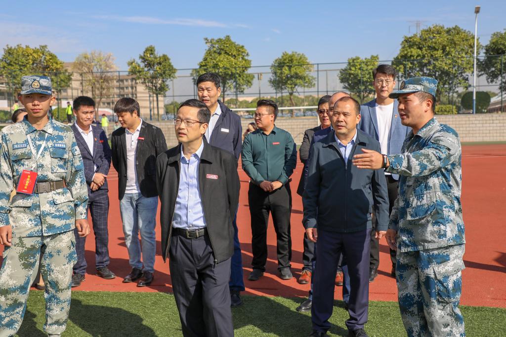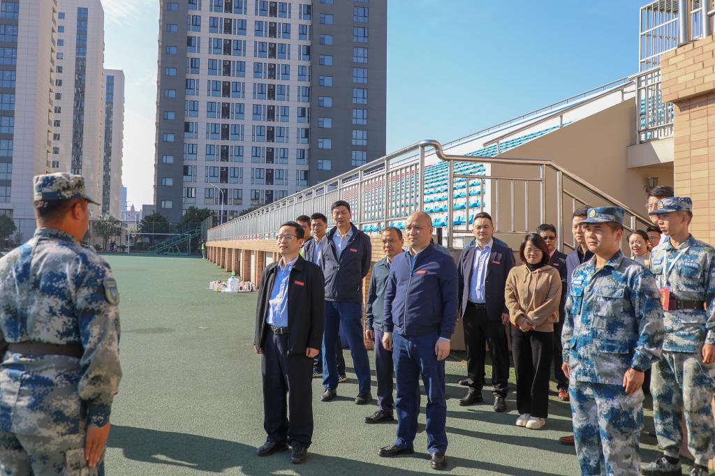 “首长好!首长好!首长好!”“同学们好!”军训场上,同学们声音嘹亮,精神抖擞,充满青春活力与热情。校领导与承训教官、带训辅导员进行亲切交谈,详细询问学生军训项目、参训学生的身体状况、军训教官和参训辅导员的带训情况。