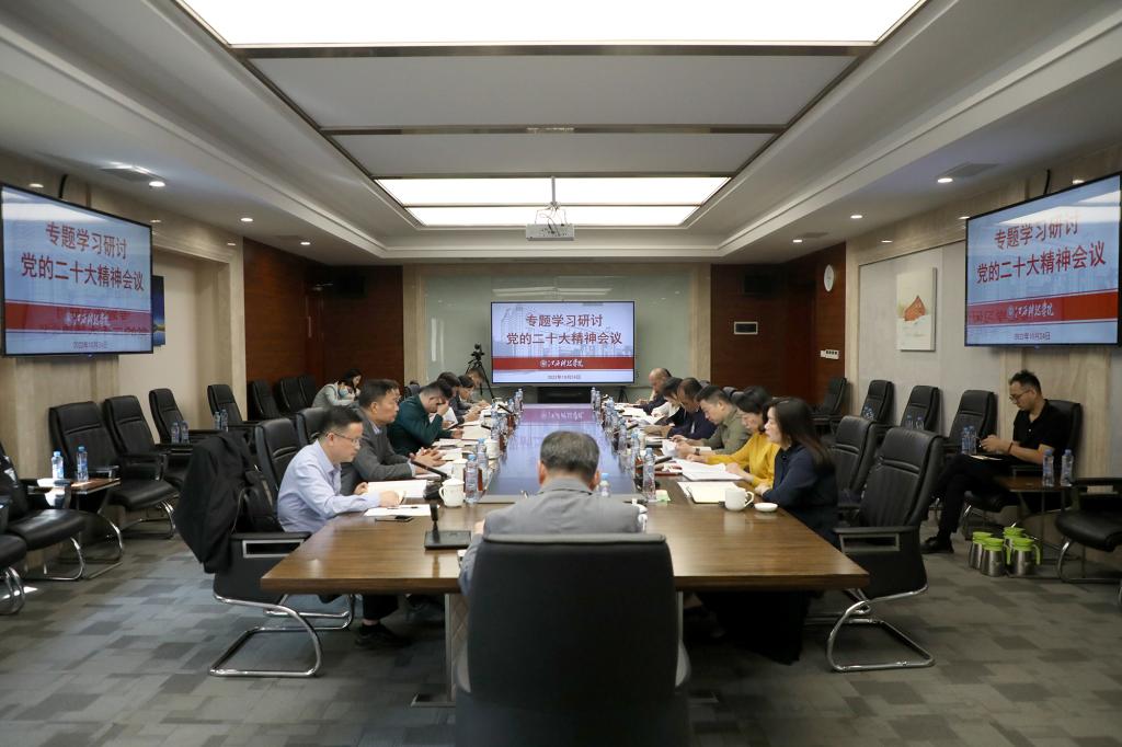 张海涛校长表示,中共二十大的胜利召开得到全国乃至世界的高度关注。习近平总书记作的报告,进一步提振了国民的信心,坚定了国民的自信,也明确了中国未来发展的道路。相信在中国共产党的领导下,在中国特色社会主义伟大旗帜的指引下,中国式现代化一定能够实现。在现代化的历史征程中,党的二十大提出高质量发展是首要目标。一直以来,学校也在追求高质量发展,提出“建设一所好大学”的目标,而好大学的核心内涵也是要高质量发展。站在新的征程上,我们要深入学习贯彻中共二十大精神,脚踏实地、求真务实,将党的二十大精神转化到日常本职工作中来,拼搏进取,共同为实现“好大学”的目标贡献自己实实在在的价值。