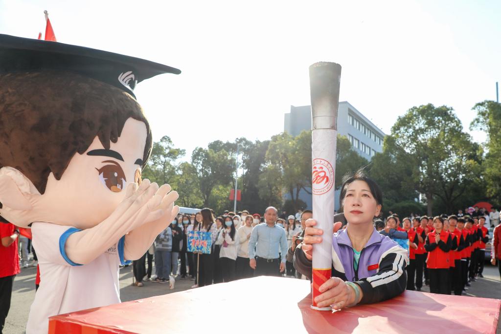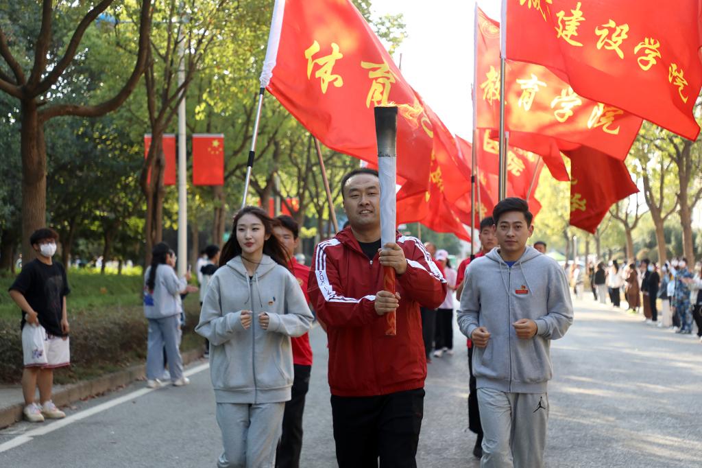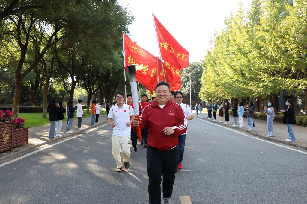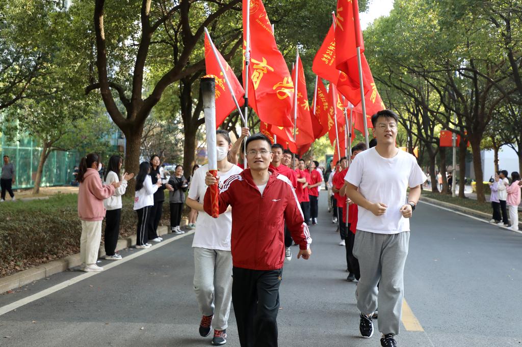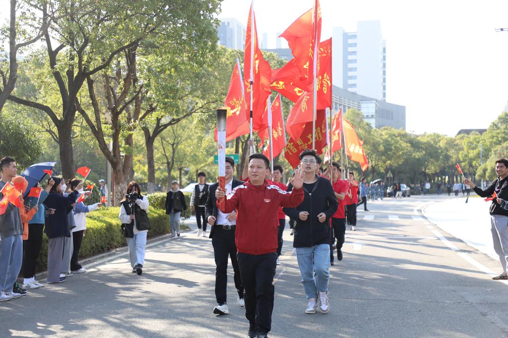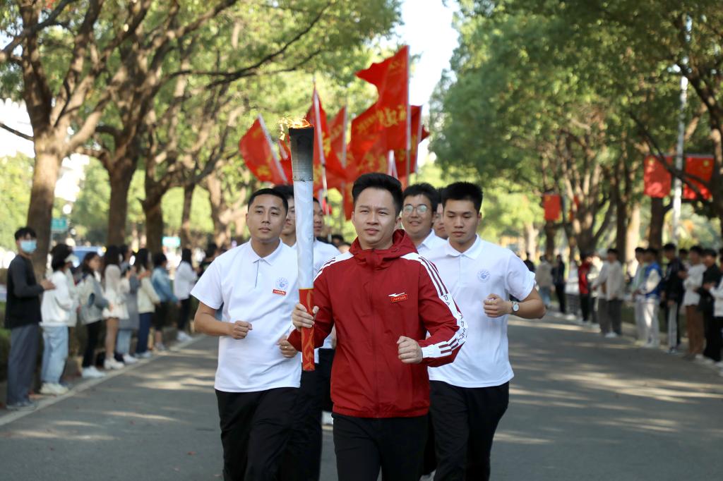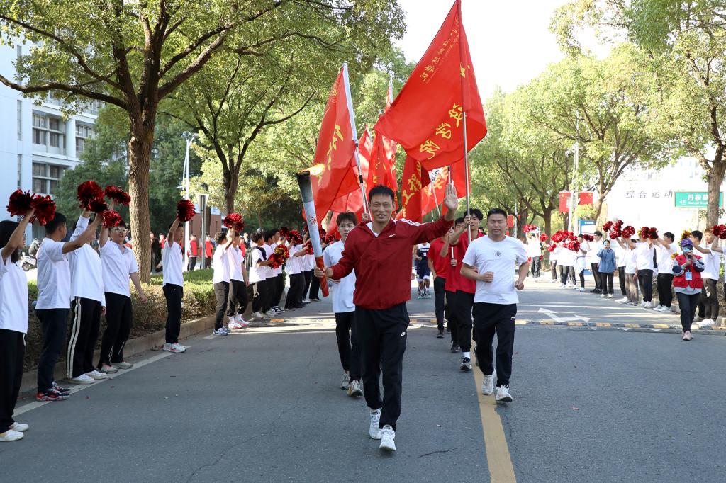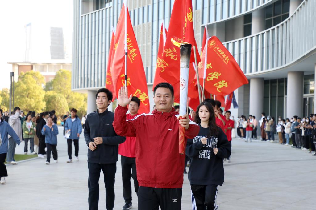 15时,在现场参加火炬传递启动仪式的师生见证下,第一棒火炬手、校党委副书记、副校长手持火炬,挥手致意后迈出坚定的步伐,校园火炬传递正式开始。火炬传递从蓝天阁出发,沿途经临水广场、综合运动馆、国旗台、中央公园、湖畔艺术中心、大学生思想政治教育基地、红绿蓝众创空间、街舞广场等学校标志性地点和校园主干道。14名火炬手高举火炬,满怀热情地一棒接一棒,奔跑、穿梭在校园内。传递路线上的师生为火炬手欢呼、鼓掌。随着最后一棒火炬手、副校长、工会主席林素君手持火炬跑向终点奥林匹克中心,现场的气氛达到了高潮。至此,本届运动会校园火炬传递活动正式结束。31日上午,校运圣火将在开幕式上点燃。