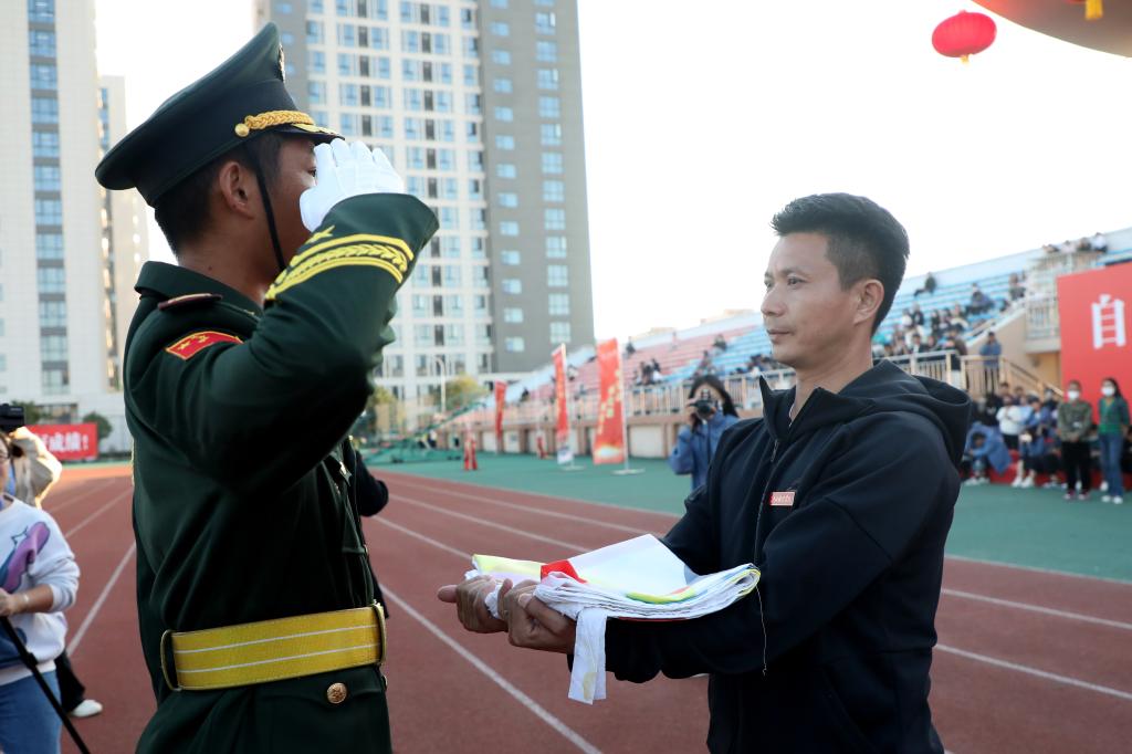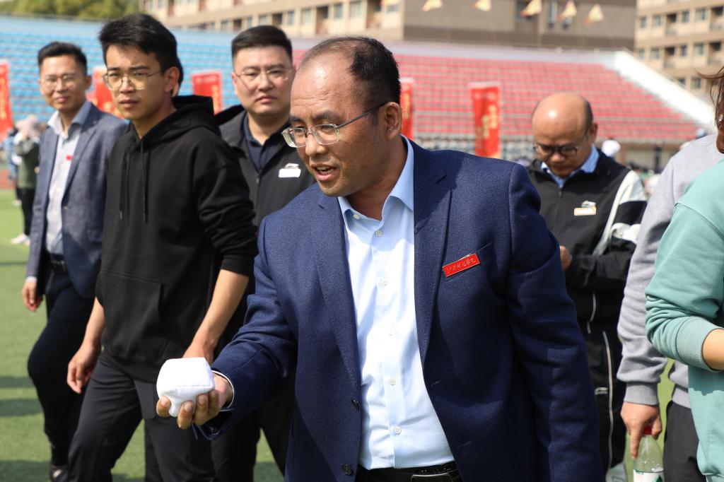 最后,在全场观众的欢呼声中,体育学院院长严财庆接过承载着体育精神的校运会会旗,为我校第二十三届运动会正式画上句号。