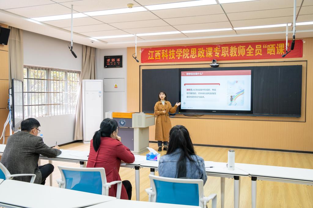 集中“晒课”是对思政课教师理论功底、教学组织、思想表达、临场应变等能力的一次全面检验“晒课”过程中,教师们不仅灵活采用多样的教学方法,而且增强思政课教学的亲和力和感染力,并且以扎实的理论功底、严谨的教学语言、科学的理论阐释“晒”出了“示范课”,讲出了有力度、有深度、有温度的思政课,展示了思政课的真理魅力。期间,陈辉副校长深入“晒课”现场巡视教师们的“晒课”情况,对大家展现出的饱满精神状态表示认可,强调思政课是落实立德树人的关键课程,思政课教师要深入学习领会党的二十大精神,把精神融入思政课教学中,切实提升教育教学水平。评课组专家从教态仪表、课堂组织、教学重难点把握、教学效果反馈等方面对参加“晒课”的思政课教师进行点评,指出不足并提出改进意见。